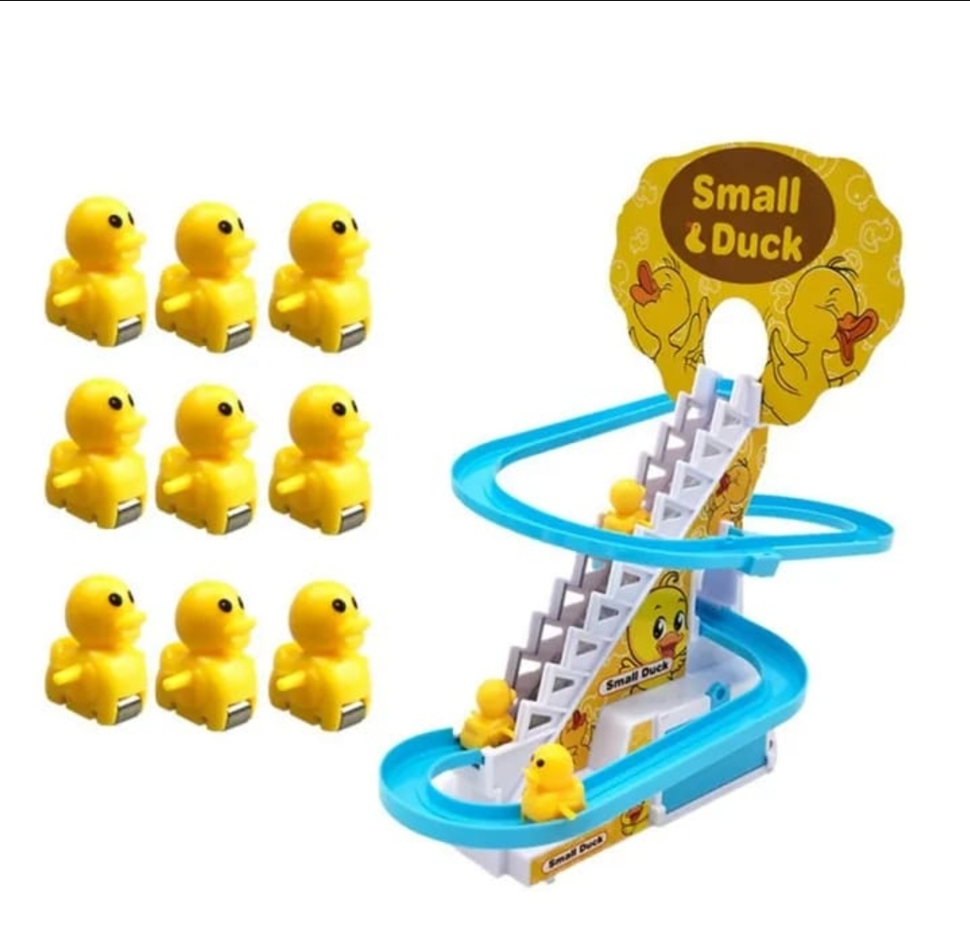 হাঁসের দল সিঁড়ি বেয়ে উঠে আবার স্লাইড বেয়ে নেমে আসে—আবার আবার! এই খেলনা শুধু বিনোদনই নয়, শিশুর মনোযোগ ও হাত-চোখের সমন্বয় দক্ষতা উন্নয়নে সাহায্য করে।