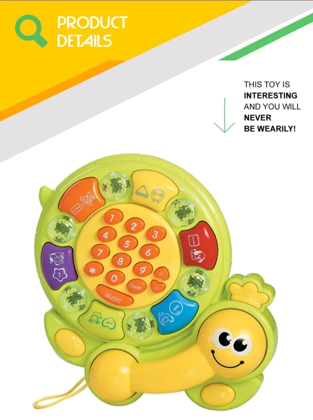আপনার ছোট্ট সোনামণির জন্য একটি মজার এবং শিক্ষামূলক খেলনা! এই মিউজিক্যাল টার্টল ফোন টি দেখতে কচ্ছপের মতো এবং এটি খেলতেও খুব সহজ। এটি শুধু একটি খেলনাই নয়, এর মাধ্যমে বাচ্চারা মজা করতে করতে শিখতেও পারবে।