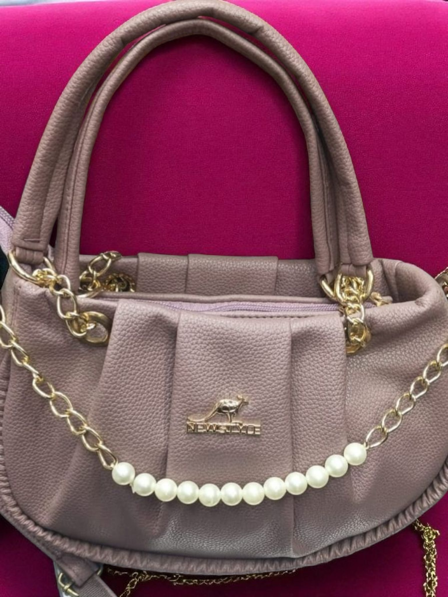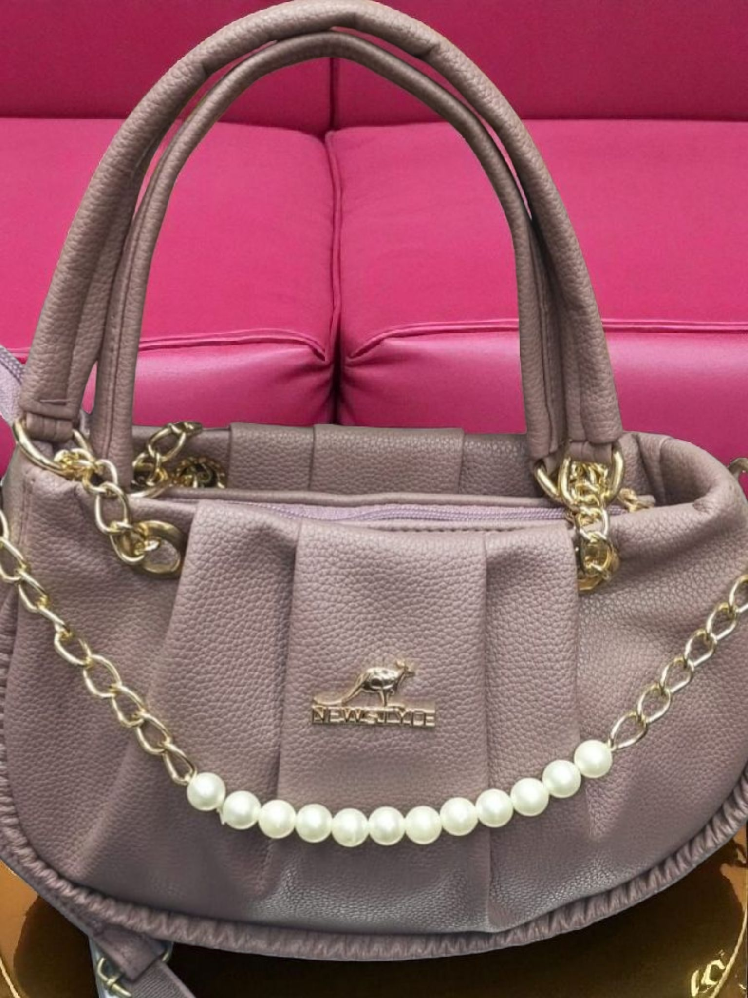 এটি একটি আভিজাত্যপূর্ণ এবং স্টাইলিশ হ্যান্ডব্যাগ। এর বাদামী রঙের টেক্সচারড ডিজাইন এবং এর উপর থাকা সোনালি রঙের 'New Style' লোগো এটিকে একটি মার্জিত চেহারা দিয়েছে। ব্যাগের হ্যান্ডেলে একটি সুন্দর মুক্তার চেইন রয়েছে, যা এর আকর্ষণ আরও বাড়িয়েছে। এটি পার্টি বা যেকোনো অনুষ্ঠানে ব্যবহার করার জন্য একদম উপযুক্ত। যারা রুচিশীলতা এবং ফ্যাশনের এক দারুণ মিশ্রণ খুঁজছেন, তাদের জন্য এটি একটি দারুণ পছন্দ।