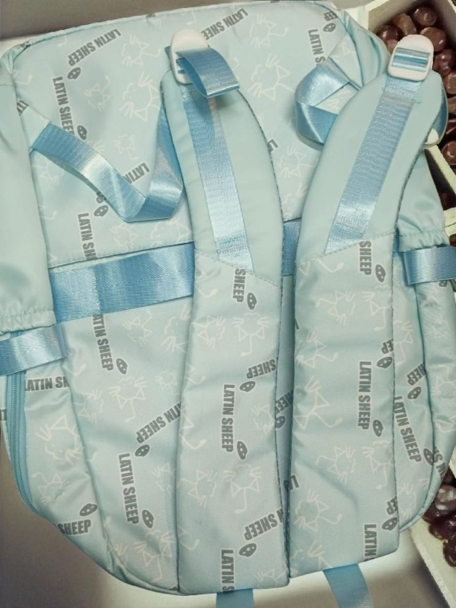 এটি একটি আকর্ষণীয় এবং মজবুত ব্যাকপ্যাক, যা দৈনন্দিন ব্যবহারের জন্য আদর্শ। এটি হালকা নীল রঙের এবং এতে 'LATIN SHEEP' ব্র্যান্ডের লোগো ও প্যাটার্ন রয়েছে, যা এটিকে একটি আধুনিক লুক দেয়। এর সামনে একটি বড় পকেট এবং উপরে একটি ছোট পকেট আছে, যা আপনার প্রয়োজনীয় জিনিসপত্র গোছানোর জন্য যথেষ্ট জায়গা প্রদান করে। এটি স্কুল, কলেজ বা ভ্রমণের জন্য দারুণ উপযোগী। এই ব্যাকপ্যাকটি স্টাইল এবং স্বাচ্ছন্দ্যের এক দারুণ মিশ্রণ।