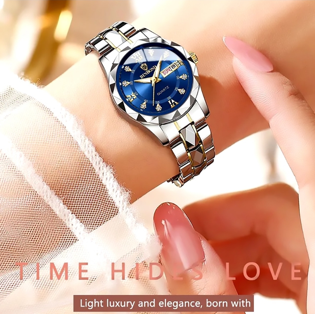 - ডিজাইন: ঘড়ি দুটির ডিজাইন খুব মার্জিত। নীল ডায়াল এবং উজ্জ্বল সোনালী ও রূপালী রঙের বেল্ট এক অসাধারণ সমন্বয় তৈরি করেছে। এই সমন্বয় ঘড়িগুলোকে আরও আকর্ষণীয় করে তুলেছে।